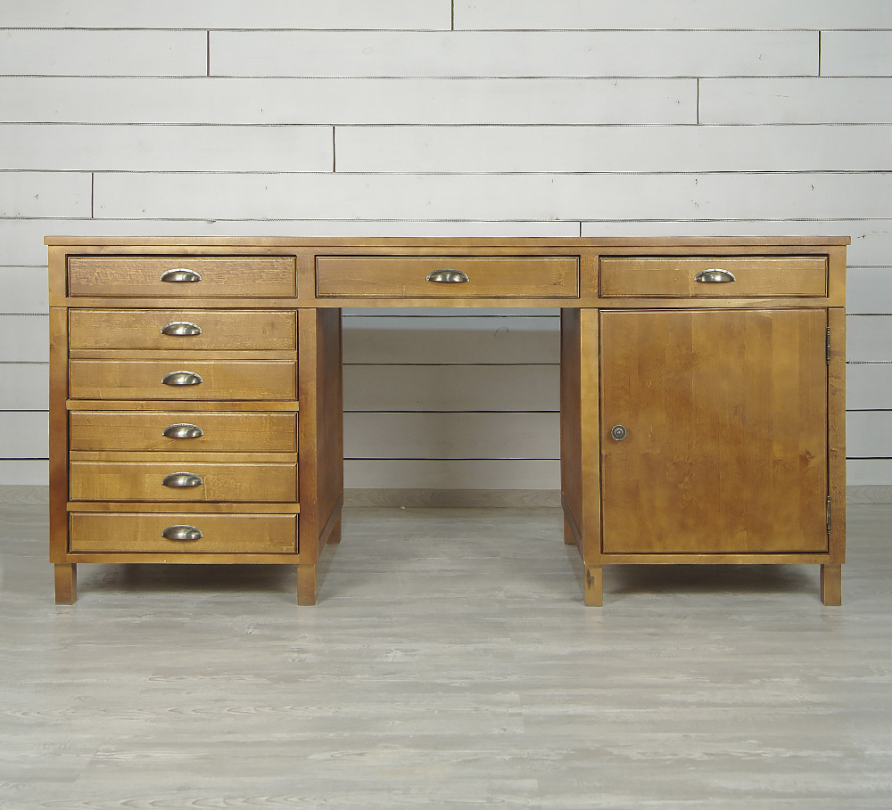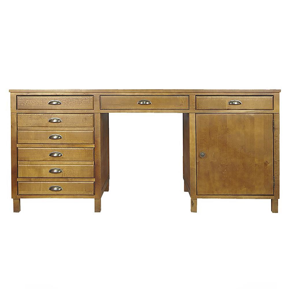 Цвет: Коричневый,Глубина, см: 70,Высота, см: 77,Ширина, см: 180,Материал: Массив березы,Вес: 79 кг,Размер: Большие,Стиль: Лофт,Форма: Прямоугольные,Дизайн: Франция,Количество ящиков: 6,Количество дверей: 1,Ножки: Деревянные,Опора: На ножках,Тип стола: письменные, Рабочий стол с дверкой Gouache коричневый