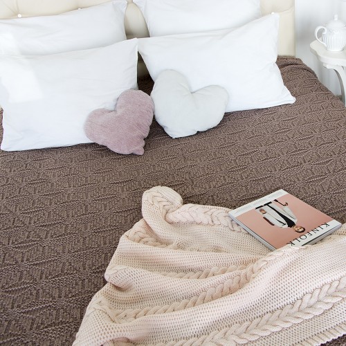 Комплект для спальни - отличный способ обновить интерьер, не делая ремонта и создать нежную атмосферу мягкости и уюта в вашей спальни! Плед крупной вязки, двуспальный. С ним каждое утро будет нежнее, а вечера теплее и уютнее. Станет стильным атрибутом для фотосессии, отличным компаньоном в дорогу или неотъемлемой частью пикника на свежем воздухе. Связан из гипоаллергенных материалов, приятно согревает, но отводит лишнее тепло.