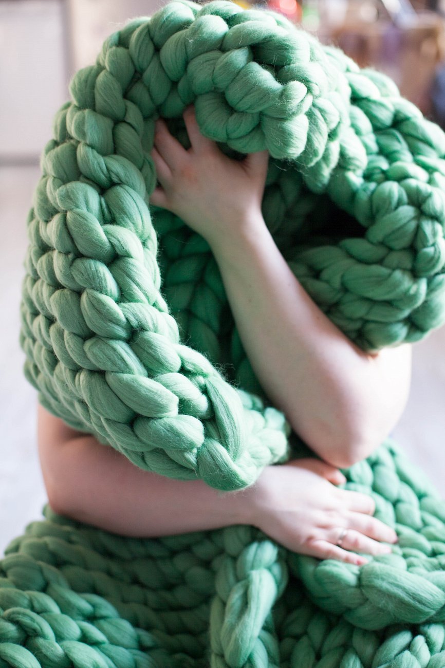 Плед крупной вязки изготовлен вручную из толстой пряжи, что делает изделие уникальным с эстетической точки зрения. Такой декор впишется в любой стиль интерьера.
