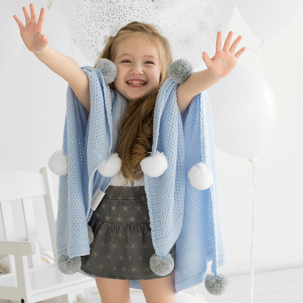 Нежный и совсем невесомый плед с помпонами для уютного и весёлого детства ваших малышей!